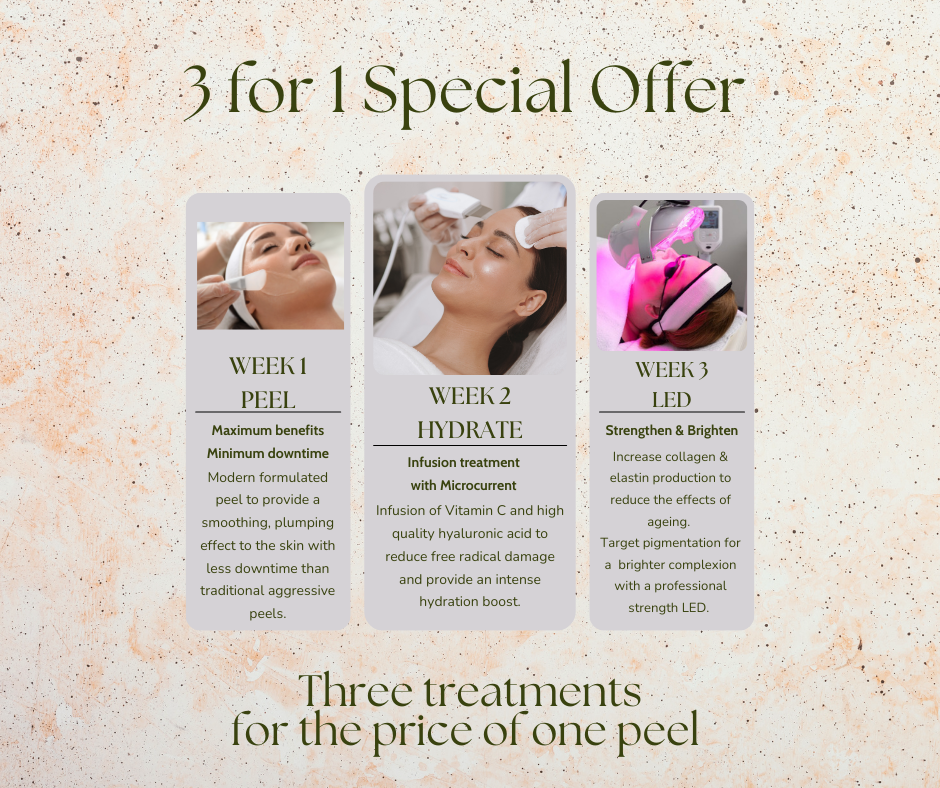 Our Week 4 reward is a 3 for 1 offer. Receive three treatments for the price of one Peel.